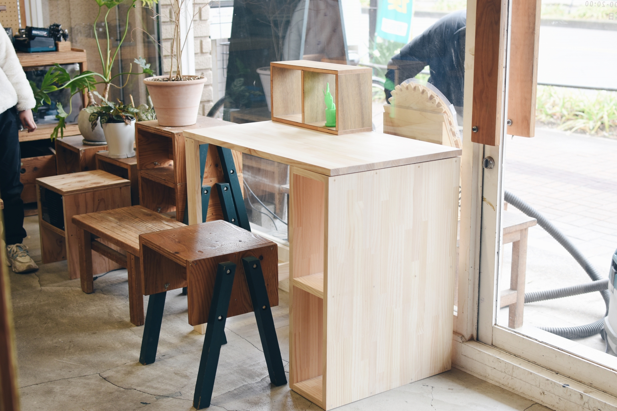 箱づくりの応用で、デスクやスツールなどもつくことができます。