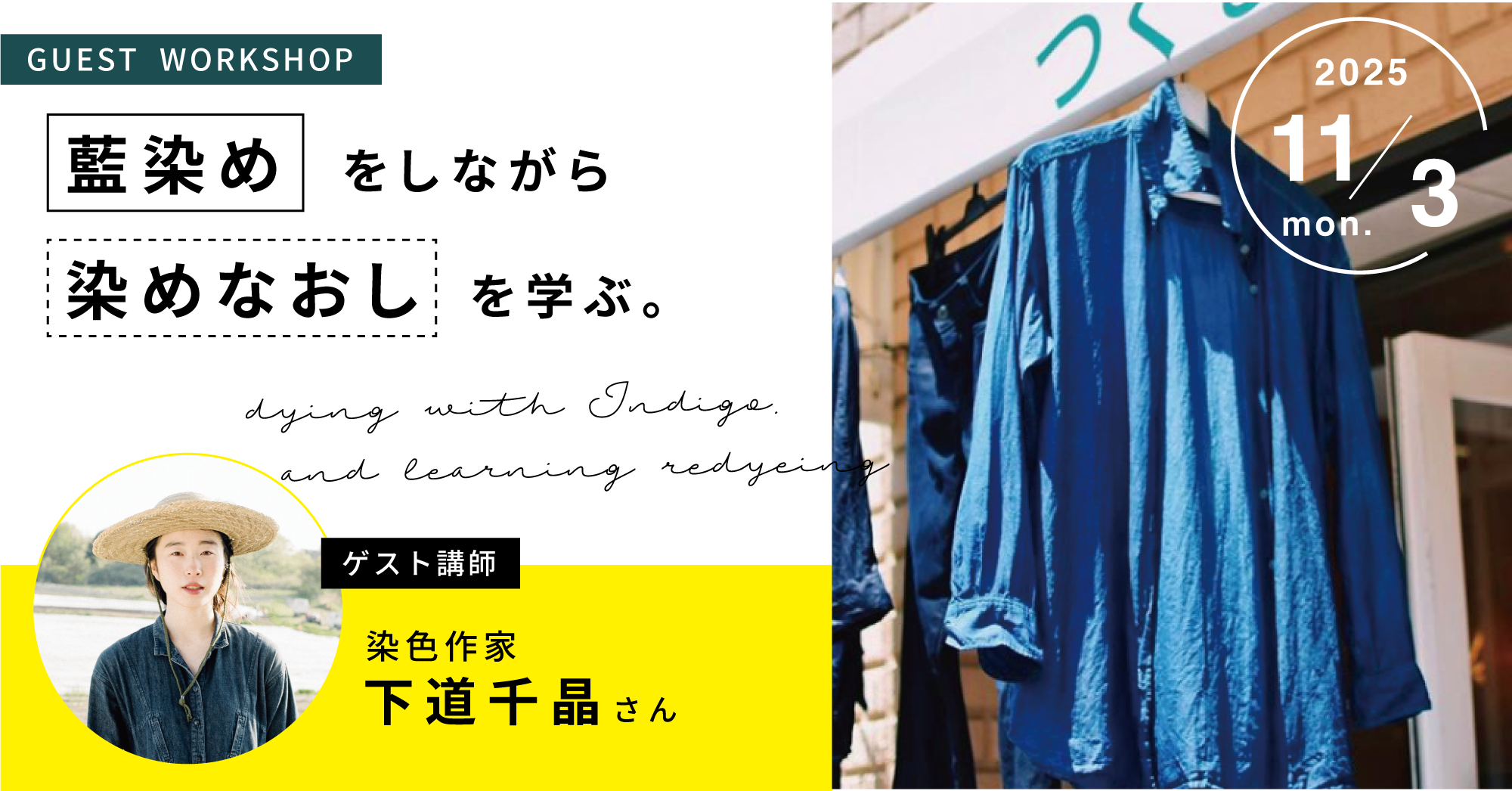 講師は、染色作家の下道千晶さん。藍染めの面白さを多くの方に知ってほしいという思いから